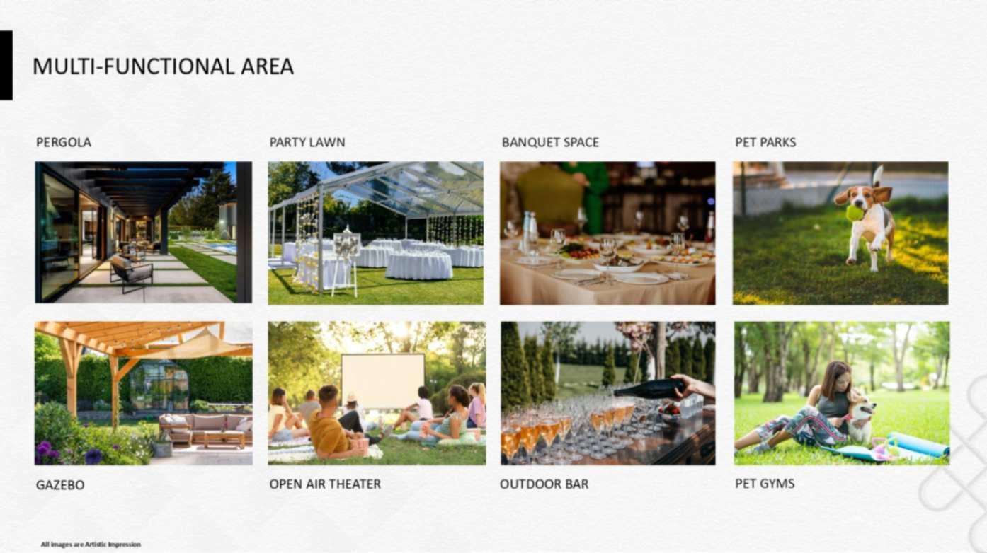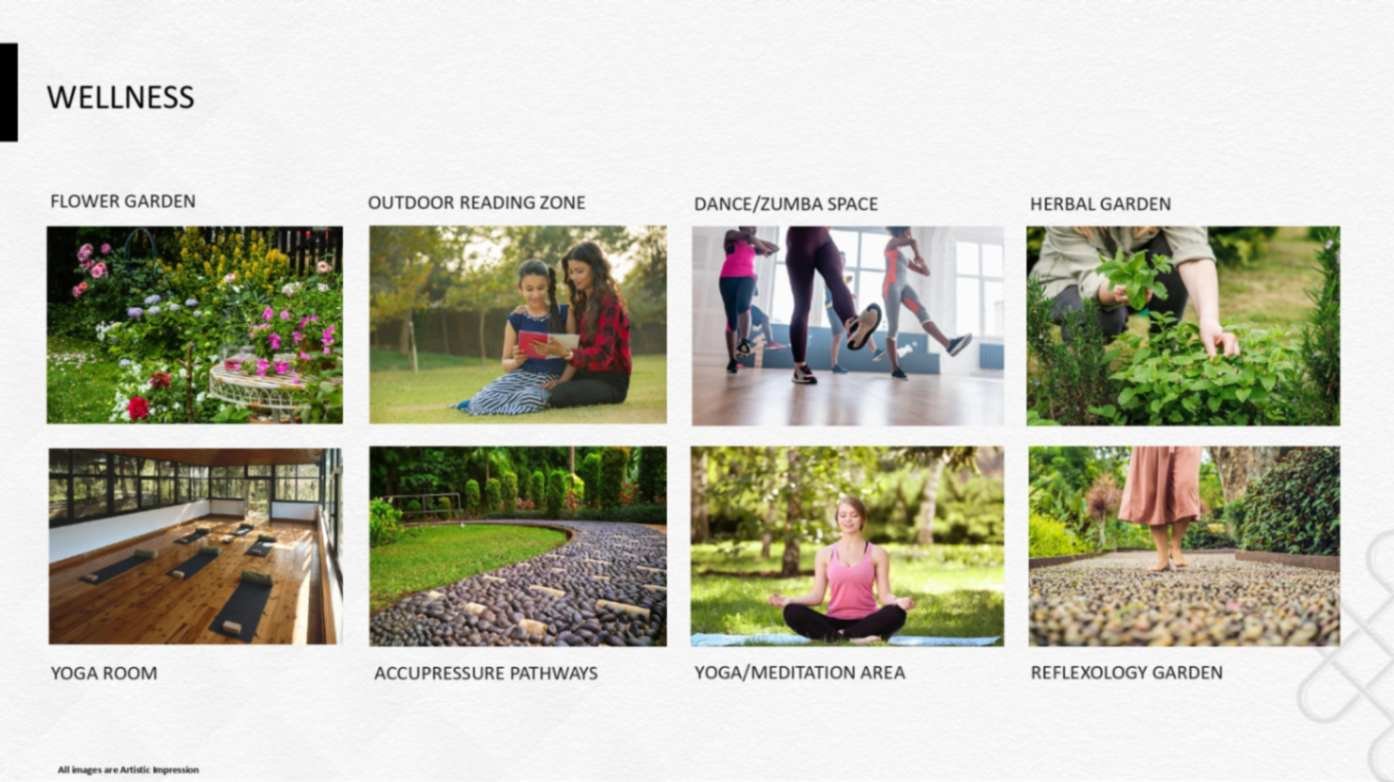including a reflexology park, banquet spaces, sports facilities, party grounds,